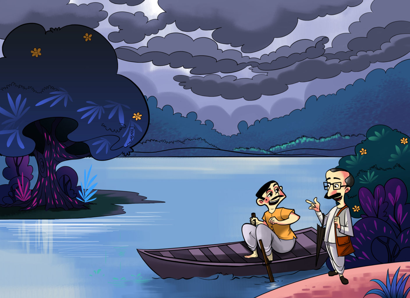 A scholar gets into a boat. He is shocked to know that the boatman is not literate and that he doesn’t even know simple grammar. Suddenly, dark clouds gather in the sky. There’s a thunderstorm. Do the two reach the other shore safely?
