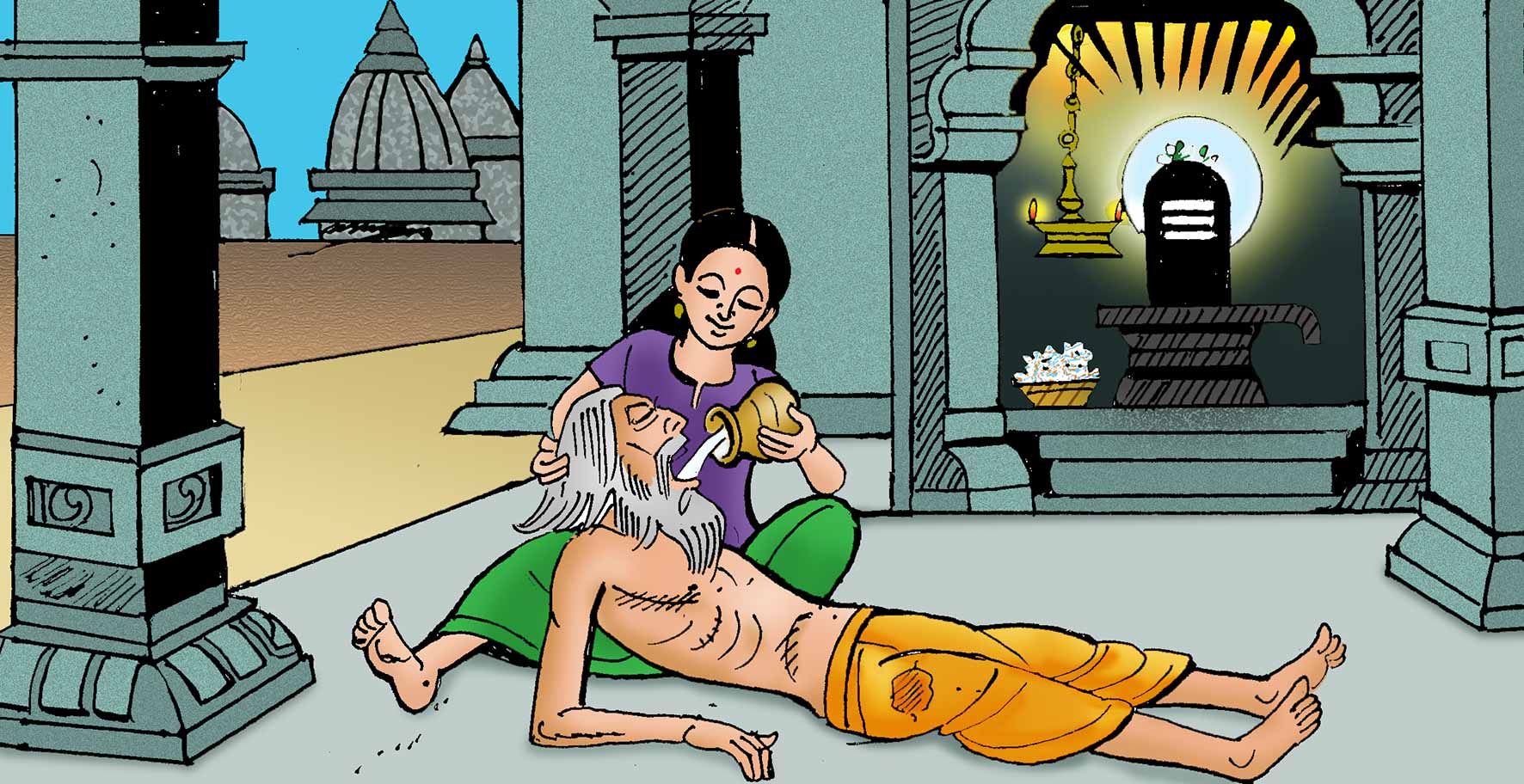 Koosu’s father is a temple priest. He delivers sermons where he says, “Shiva is everywhere!” Little Koosu hears everything her father says. One day the priest has to go out of the village for some work. He asks Koosu to bathe the Shiva Ling in the temple with milk instead of him. Does Shiva get his milk?