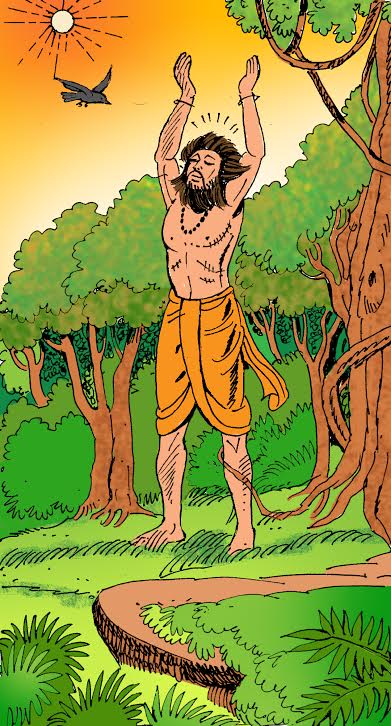 A young ascetic strode into a thick jungle. He took a dip in a pond and walked to a forest clearing. He stood with legs slightly apart, looked up, closed his eyes and stood motionless, taking the sun and the passing wind on his face. He stood still without movement for hours, for days and nights, for weeks, and for months. Many years passed; he did not stir. He just stood, eyes closed, mind still, heart filled with peace and love.