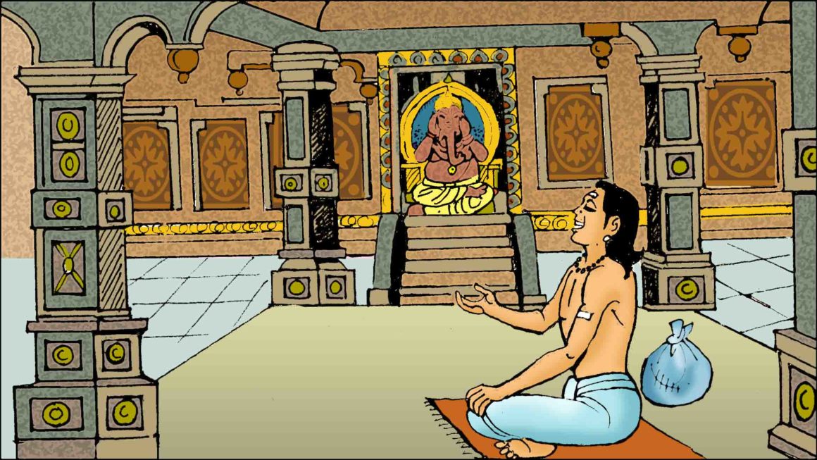 When Kalyan woke up late in the morning he found his parents talking about the strange story of Lord Ganapati with his hands pressed against his ears. Soon Kalyan realised they were talking about the temple where he had practiced singing the previous evening.